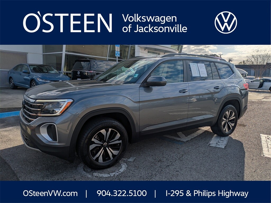 2024 Volkswagen Atlas 2.0T SE CERTIFIED PRE-OWNED, CLEAN CARFAX, NO ACCIDENTS, ONE OWNER, STILL UNDER FACTORY WARRANTY, NON SMOKER, LOCAL TRADE, Atlas 2.0T SE, 4D Sport Utility, FWD, Platinum Gray Metallic, Shetland Beige Premium Synthetic, 3rd row seats: split-bench, 6 Speakers, ABS brakes, AM/FM radio: SiriusXM with 360L, Auto-dimming Rear-View mirror, Automatic temperature control, Brake assist, Dual front impact airbags, Dual front side impact airbags, Emergency communication system: VW Car-Net Safe & Secure 5-year, Exterior Parking Camera Rear, Four wheel independent suspension, Front anti-roll bar, Front Center Armrest, Front dual zone A/C, Fully automatic headlights, Heated door mirrors, Heated front seats, Occupant sensing airbag, Outside temperature display, Overhead airbag, Overhead console, Panic alarm, Perforated V-Tex Leatherette Seating Surfaces, Power driver seat, Power steering, Radio data system, Radio: MIB3 Composition Media, Rain sensing wipers, Rear air conditioning, Rear anti-roll bar, Rear reading lights, Rear seat center armrest, Rear window defroster, Security system, Speed control, Speed-sensing steering, Split folding rear seat, Standard Suspension, Telescoping steering wheel, Traction control, Turn signal indicator mirrors, Variably intermittent wipers, Ventilated front seats.