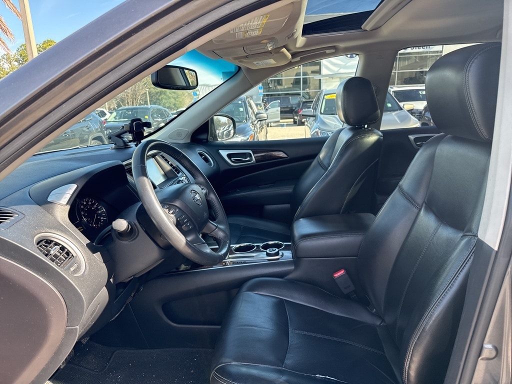 2015 Nissan Pathfinder SL 4WD, 18" Alloy Wheels, 3rd row seats: bench, 4-Wheel Disc Brakes, 5.577 Axle Ratio, 6 Speakers, 7-Pin Trailer Wiring Harness, ABS brakes, Activation Disclaimer, Air Conditioning, Alloy wheels, AM/FM radio: SiriusXM, Auto-dimming Rear-View mirror, Automatic temperature control, Black Splash Guards 4-Piece, Bodyside moldings, Brake assist, Bumpers: body-color, Cargo Package, Carpeted Floor Mat (4-Pc Set), CD player, Compass, Cross Bars, Driver door bin, Driver vanity mirror, Dual DVD Entertainment System, Dual front impact airbags, Dual front side impact airbags, Dual Panorama Moonroof, Electronic Stability Control, First Aid Kit, Four wheel independent suspension, Front anti-roll bar, Front Bucket Seats, Front Center Armrest w/Storage, Front dual zone A/C, Front fog lights, Front reading lights, Fully automatic headlights, Garage door transmitter: HomeLink, Heated door mirrors, Heated Front & Rear Bucket Seats, Heated front seats, Heated rear seats, Illuminated entry, Illuminated Kick Plates, Leather Seating Surfaces, Leather Shift Knob, Leather steering wheel, Low Cost Around View Monitor System, Low tire pressure warning, Memory seat, Occupant sensing airbag, Outside temperature display, Overhead airbag, Overhead console, Panic alarm, Passenger door bin, Passenger vanity mirror, Power door mirrors, Power driver seat, Power Liftgate, Power passenger seat, Power steering, Power windows, Radio data system, Radio: AM/FM/RDS/MP3/1CD Audio System w/6-Speakers, Radio: Bose Audio System w/AM/FM/CD & 13 Speakers, Rear air conditioning, Rear anti-roll bar, Rear Bumper Protector, Rear Parking Sensors, Rear reading lights, Rear seat center armrest, Rear window defroster, Rear window wiper, Reclining 3rd row seat, Remote keyless entry, Roof rack: rails only, Security system, SL Premium Package, Speed control, Speed-sensing steering, Speed-Sensitive Wipers, Split folding rear seat, Spoiler, Steering wheel mounted audio controls, Tachometer, Telescoping steering wheel, Tilt steering wheel, Tonneau Cover, Tow Hitch Receiver w/Finisher, Traction control, Trip computer, Variably intermittent wipers, LOCAL TRADE, 4WD.