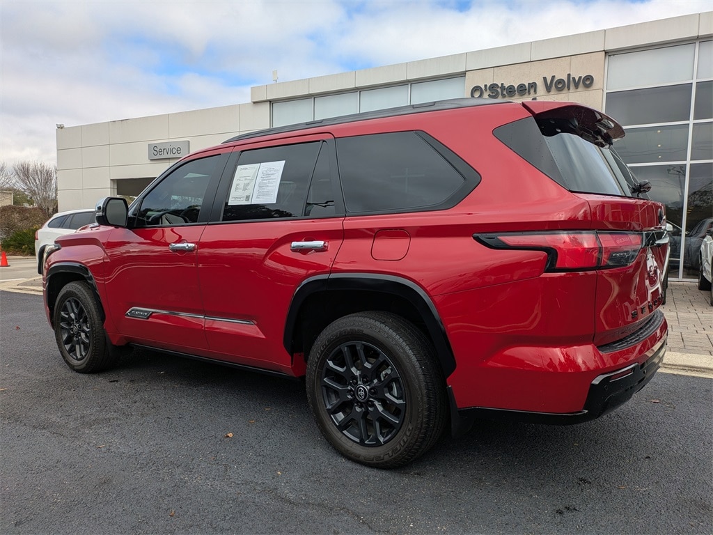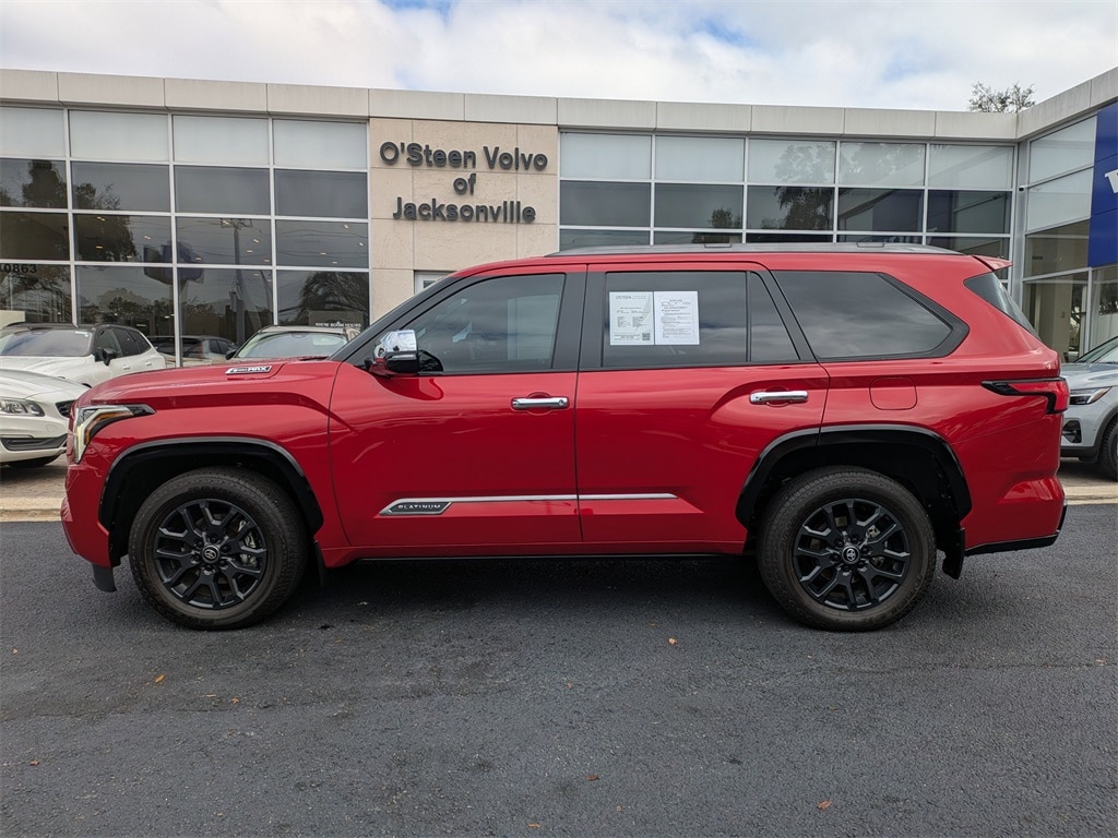 2025 Toyota Sequoia Platinum CLEAN CARFAX, NO ACCIDENTS, ONE OWNER, Sequoia Platinum, V6 Hybrid, 10-Speed Automatic, 4WD, Supersonic Red, Black w/Premium Leather Seat Trim, 14 Speakers, 3rd row seats: split-bench, 4-Wheel Disc Brakes, ABS brakes, Air Conditioning, Alloy wheels, AM/FM radio: SiriusXM, Anti-whiplash front head restraints, Apple CarPlay/Android Auto, Auto High-beam Headlights, Auto tilt-away steering wheel, Auto-dimming door mirrors, Auto-dimming Rear-View mirror, Automatic temperature control, Brake assist, Bumpers: body-color, Compass, Delay-off headlights, Driver door bin, Driver vanity mirror, Dual front impact airbags, Dual front side impact airbags, Electronic Stability Control, Emergency communication system: Safety Connect (10-year trial), Exterior Parking Camera Rear, Front anti-roll bar, Front Bucket Seats, Front Center Armrest w/Storage, Front dual zone A/C, Front fog lights, Front reading lights, Front wheel independent suspension, Fully automatic headlights, Garage door transmitter: HomeLink, Headlight cleaning, Heated & Ventilated Front Seats, Heated door mirrors, Heated front seats, Heated rear seats, Heated steering wheel, Illuminated entry, Knee airbag, Leather steering wheel, Low tire pressure warning, Memory seat, Navigation system: Drive Connect (1 year trial) includes Cloud Navigation with real time traffic and Google POI, Occupant sensing airbag, Outside temperature display, Overhead airbag, Overhead console, Panic alarm, Passenger door bin, Passenger vanity mirror, Power door mirrors, Power driver seat, Power Liftgate, Power moonroof, Power passenger seat, Power steering, Power windows, Premium audio system: JBL, Premium Leather Seat Trim, Radio: 14" Toyota Audio Multimedia w/JBL Prem Aud, Rain sensing wipers, Rear air conditioning, Rear reading lights, Rear seat center armrest, Rear window defroster, Rear window wiper, Reclining 3rd row seat, Remote keyless entry, Security system, Speed control, Speed-sensing steering, Split folding rear seat, Spoiler, Steering wheel mounted audio controls, Tachometer, Telescoping steering wheel, Tilt steering wheel, Traction control, Trip computer, Turn signal indicator mirrors, Variably intermittent wipers, Ventilated front seats, Ventilated rear seats, Voltmeter, Wheels: 20" Machined-Finish Black Alloy, NAVIGATION, NON SMOKE, Sequoia Platinum, V6 Hybrid, 10-Speed Automatic, 4WD, Supersonic Red, Black w/Premium Leather Seat Trim.