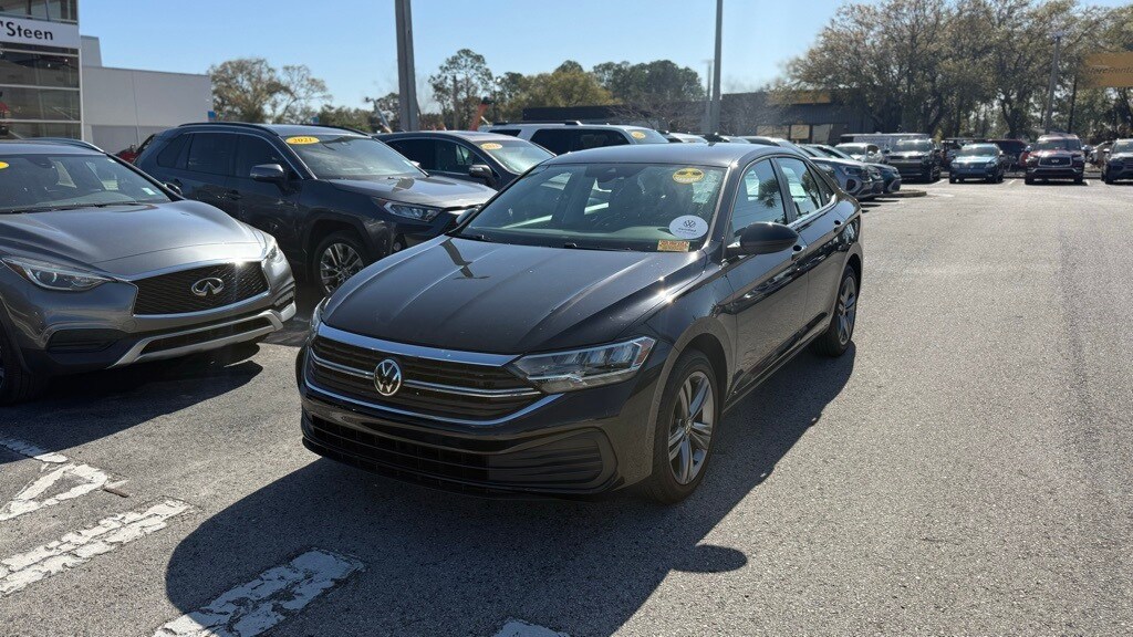 2022 Volkswagen Jetta 1.5T SE CERTIFIED PRE-OWNED, CLEAN CARFAX, NO ACCIDENTS, ONE OWNER, STILL UNDER FACTORY WARRANTY, Jetta 1.5T SE, Volkswagen Certified Pre-Owned Certified, 4D Sedan, Black, Titan Black w/V-Tex Leatherette Seat Trim, Auto-dimming Rear-View mirror, Automatic temperature control, Delay-off headlights, Exterior Parking Camera Rear, Fully automatic headlights, Heated front seats, Power driver seat, Power steering, Power windows, Rain sensing wipers, Rear window defroster, Remote keyless entry, Split folding rear seat, V-Tex Leatherette Seat Trim, Variably intermittent wipers, 4 Speakers, 4-Wheel Disc Brakes, ABS brakes, Active Blind Spot Monitor, Air Conditioning, Alloy wheels, AM/FM radio, Brake assist, Bumpers: body-color, Driver door bin, Driver vanity mirror, Dual front impact airbags, Dual front side impact airbags, Electronic Stability Control, Emergency communication system: Car-Net, Front anti-roll bar, Front Bucket Seats, Front Center Armrest, Front dual zone A/C, Front wheel independent suspension, Heated door mirrors, Heated Front Comfort Sport Seats, Illuminated entry, Leather Shift Knob, Low tire pressure warning, Occupant sensing airbag, Outside temperature display, Overhead airbag, Overhead console, Panic alarm, Passenger door bin, Passenger vanity mirror, Power door mirrors, Radio data system, Radio: MIB3 Composition Color w/6.5" Touchscreen, Rear anti-roll bar, Rear reading lights, Rear seat center armrest, Speed control, Speed-sensing steering, Steering wheel mounted audio controls, Tachometer, Telescoping steering wheel, Tilt steering wheel, Traction control, Trip computer, Wheels: 17" Twin 5-Spoke Silver Painted Alloy, SPECIAL FINANCING AVAILABLE, NON SMOKER, LOCAL TRADE, Jetta 1.5T SE, 4D Sedan, Black, Titan Black w/V-Tex Leatherette Seat Trim, Auto-dimming Rear-View mirror, Automatic temperature control, Delay-off headlights, Exterior Parking Camera Rear, Fully automatic headlights, Heated front seats, Power driver seat, Power steering, Power windows, Rain sensing wipers, Rear window defroster, Remote keyless entry, Split folding rear seat, V-Tex Leatherette Seat Trim, Variably intermittent wipers.