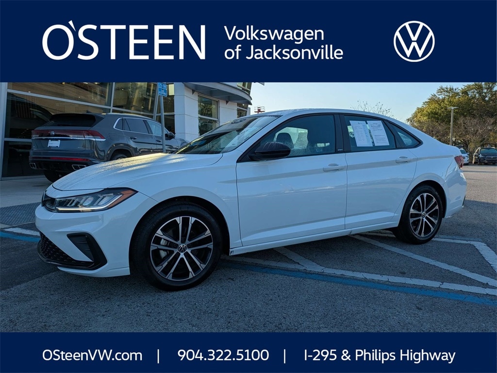 2025 Volkswagen Jetta 1.5T Sport CERTIFIED PRE-OWNED, CLEAN CARFAX, NO ACCIDENTS, ONE OWNER, STILL UNDER FACTORY WARRANTY, Volkswagen Certified Pre-Owned Certified, Grigio/Titan Black Cloth, Active Blind Spot Monitor, Air Conditioning, Auto-dimming Rear-View mirror, Automatic temperature control, Brake assist, Cloth Seat Trim, Delay-off headlights, Driver door bin, Driver vanity mirror, Exterior Parking Camera Rear, Front dual zone A/C, Fully automatic headlights, Heated door mirrors, Heated front seats, Leather Shift Knob, Leather steering wheel, Occupant sensing airbag, Panic alarm, Power door mirrors, Radio: MIB3 Composition Color w/8" Touchscreen, Rain sensing wipers, Rear window defroster, Remote keyless entry, Split folding rear seat, Variably intermittent wipers, 4 Speakers, 4-Wheel Disc Brakes, ABS brakes, Alloy wheels, Bumpers: body-color, Dual front impact airbags, Dual front side impact airbags, Electronic Stability Control, Emergency communication system: VW Car-Net Safe & Secure 5-year, Front anti-roll bar, Front Bucket Seats, Front Center Armrest, Front wheel independent suspension, Heated Front Seats, Illuminated entry, Low tire pressure warning, Outside temperature display, Overhead airbag, Overhead console, Passenger door bin, Passenger vanity mirror, Power steering, Power windows, Radio data system, Rear anti-roll bar, Rear reading lights, Rear seat center armrest, Speed control, Speed-sensing steering, Steering wheel mounted audio controls, Tachometer, Telescoping steering wheel, Tilt steering wheel, Traction control, Trip computer, Wheels: 17" 2-Tone Machined Alloy, SPECIAL FINANCING AVAILABLE, NON SMOKER, Grigio/Titan Black Cloth, Active Blind Spot Monitor, Air Conditioning, Auto-dimming Rear-View mirror, Automatic temperature control, Brake assist, Cloth Seat Trim, Delay-off headlights, Driver door bin, Driver vanity mirror, Exterior Parking Camera Rear, Front dual zone A/C, Fully automatic headlights, Heated door mirrors, Heated front seats, Leather Shift Knob, Leather steering wheel, Occupant sensing airbag, Panic alarm, Power door mirrors, Radio: MIB3 Composition Color w/8" Touchscreen, Rain sensing wipers, Rear window defroster, Remote keyless entry, Split folding rear seat, Variably intermittent wipers.