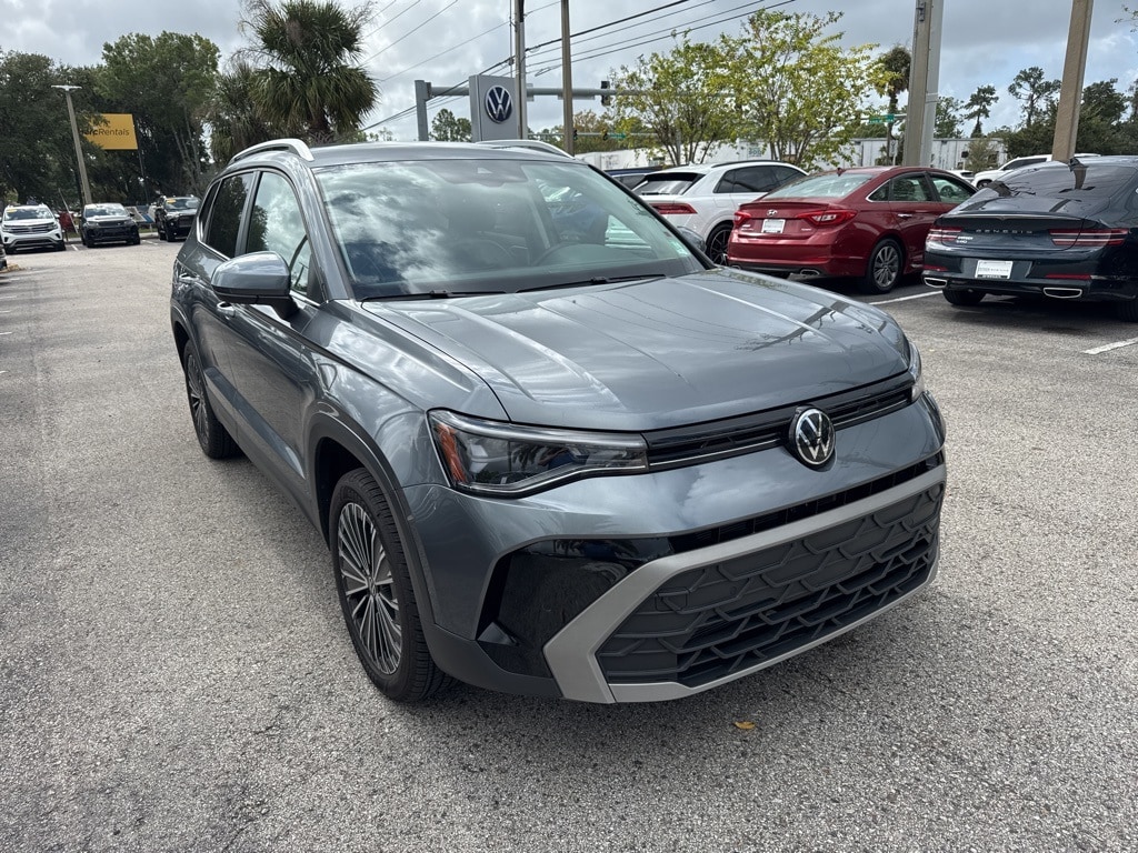 CARFAX One-Owner. Clean CARFAX. Certified. Platinum Gray Metallic 2025 Volkswagen Taos 1.5T SE FWD 8-Speed Automatic with Tiptronic 1.5L I4 Turbocharged DOHC 16V LEV3-SULEV30 174hp